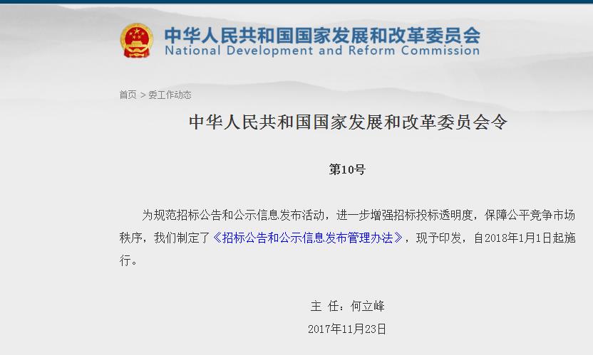 國家發(fā)展和改革委員會(huì)令第10號(hào)——《招標(biāo)公告和公示信息發(fā)布管理辦法》