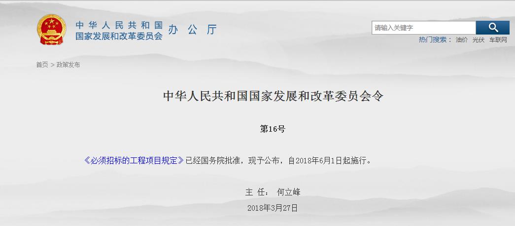 國家發展和改革委員會令 第16號—《必須招標的工程項目規定》